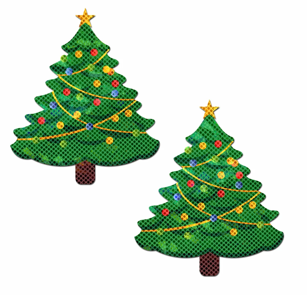 Christmas Tree Nipple Pasties by Pastease® are hand-made in the USA of soft form-fitting glitter velvet material that forms seamlessly to curves and resists wrinkling over hardening nipples. Just peel-and-stick these Christmas tree pasties on clean, dry skin! All Pastease® pasties feature a latex-free, medical-grade, waterproof adhesive that stays securely in place for as long as you like and until they are gently removed. Conceal or Reveal with Pastease® nipple pasties when worn with a sexy outfit, daring bikini, sheer top, revealing dress, Hefty bag, body lotion, crazy costume, party theme or nothing at all!