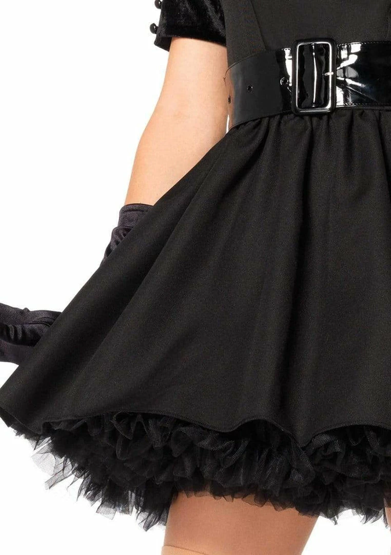 Get ready for some chilling adventures in the 3 PC Bewitching Witch costume. Our favorite spell caster features a vintage-inspired dress with organza and velvet collared bodice, wide belt, and matching hat. Pair with knee highs stockings for the perfect Halloween costume look!