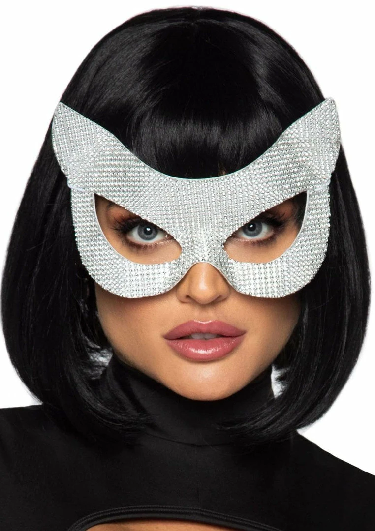 Sparkle and shine with this Faux Rhinestone Cat Mask. Add some glam to your costume and make it your own! Made with elastic straps for the perfect fit.