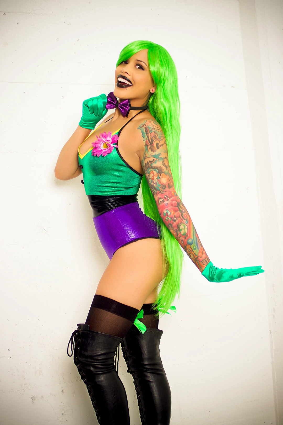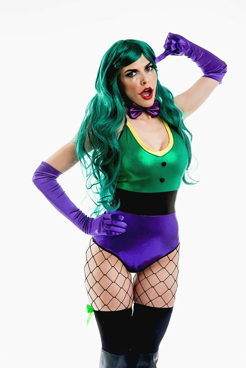 We love to add these Black Opaque Thigh High Stockings with Neon Green Satin Bows to our Joker costumes! The green satin bows are sure to stand out and make your costume really POP! Check out all of our different Joker pieces that you can play with and build your own costume.