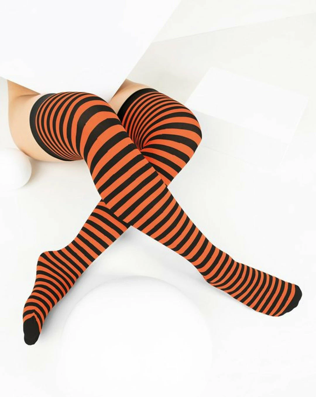 Check out these Black and Orange Striped Thigh Highs! Look oh-so-sexy with a bodysuit or one of our Sugarpuss Costumes! Perfect for our Cosplay Costume Sets!