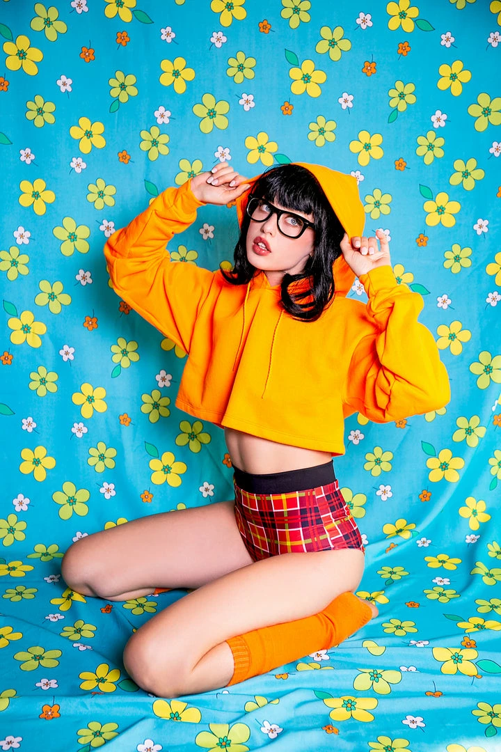 JINKIES!! We are beyond excited about this new hoodie!!! Our Sugarpuss Brains of the Mystery Gang crop hoodie in orange is a perfect addition to your costume! This sweatshirt is sure to keep you looking cozy and cute all year long!