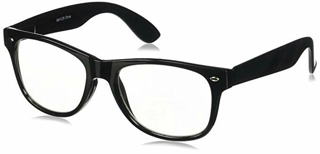 The lenses are clear plastic, with no actual corrective lenses in them. They have that retro look with a square shape to them. We’ve picked the perfect pair!!