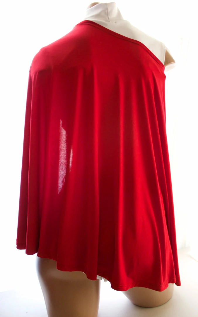 The cape is red with gold details including gold rope that hits just below the waistline.