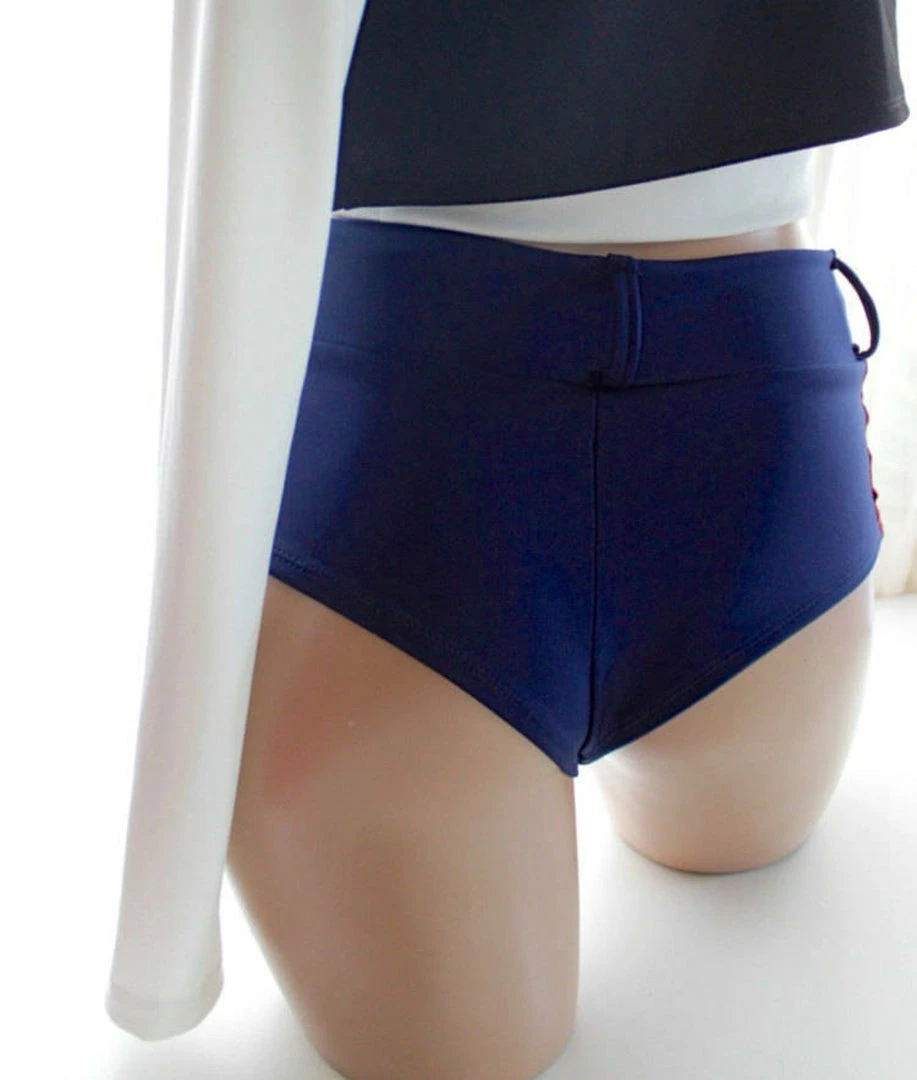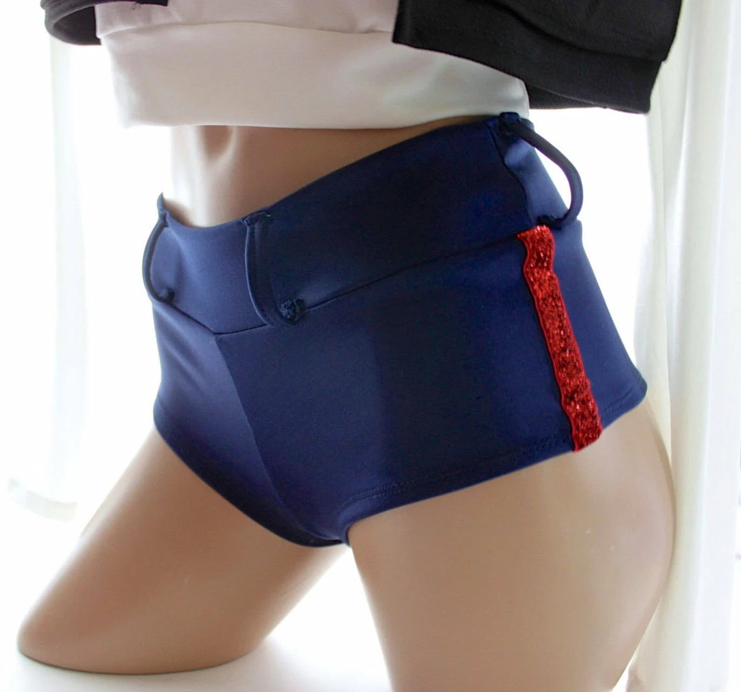 The bottoms are lowrise with the signature red stripe on sides (we make it sparkly for fun!) and belt loops. Add your own leather belt or holster to make it look more like the original… that’s up to you!