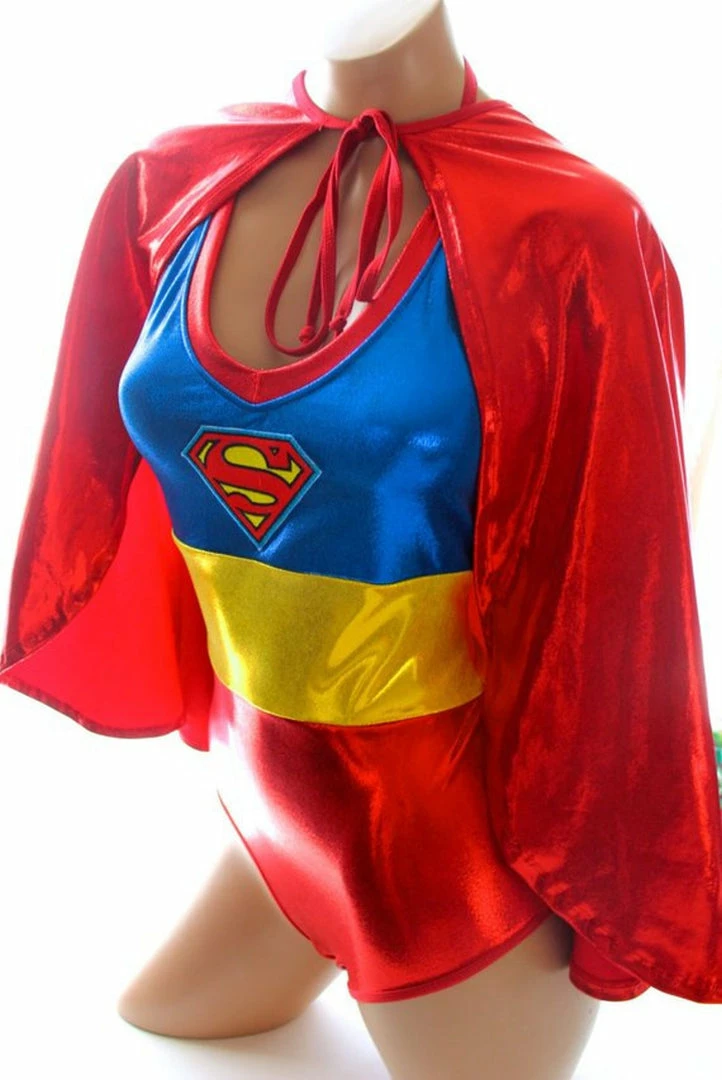 Our Sugarpuss Red Metallic Cape is perfect for our Super Girl Hero costumes!