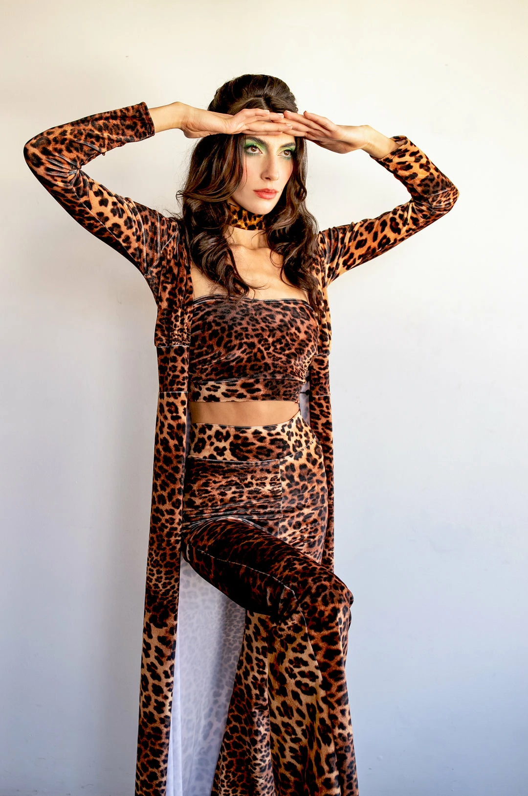 All pieces come in matching 4-way stretch plush velvet leopard print fabric. *last picture is for fabric reference
