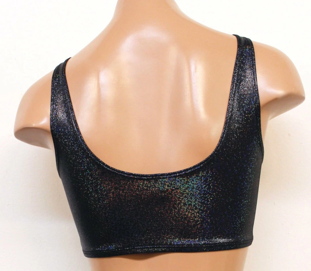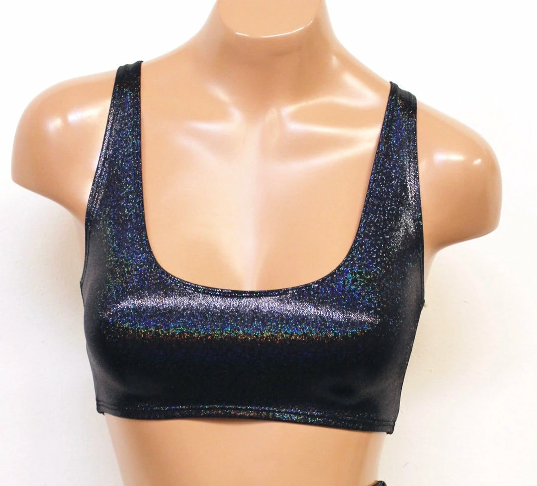 Made of high-quality 4-way stretch metallic hologram lycra.