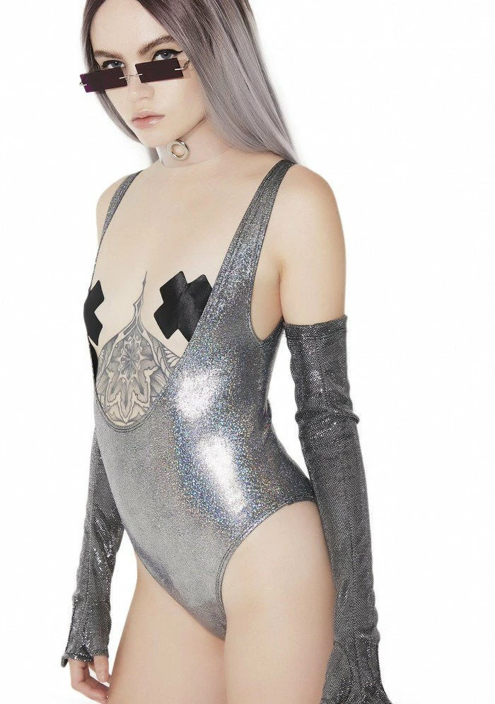 Our super popular Suspender Suit is now available in Silver Hologram!
