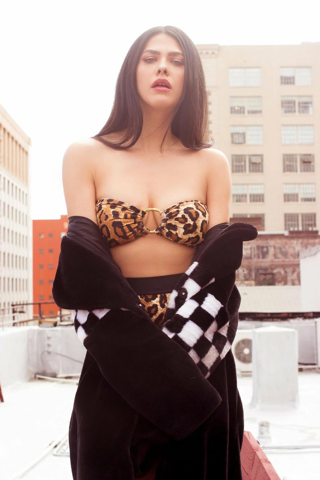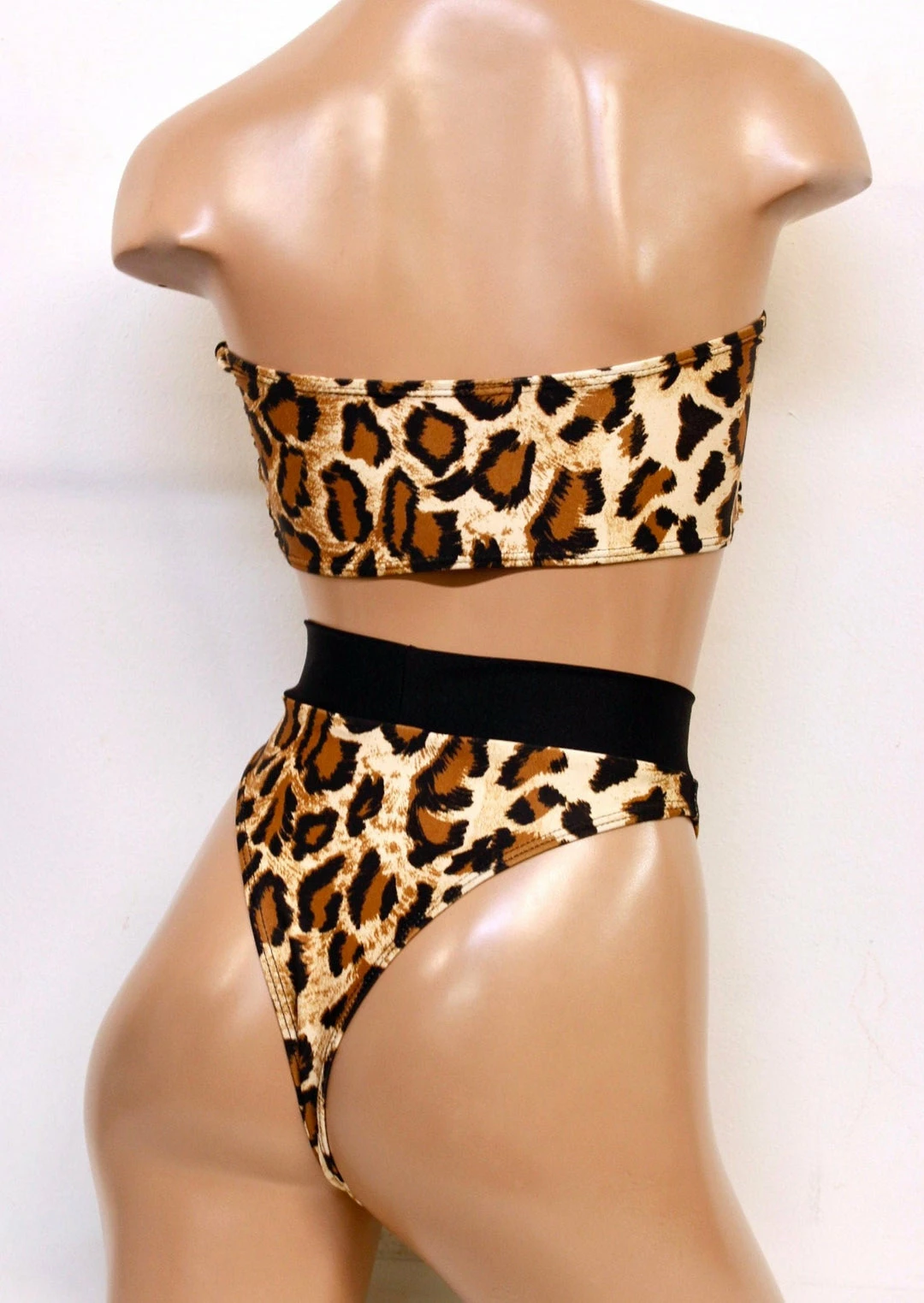 The bottom is highwaist and highcut with a thongback for a very cheeky look.