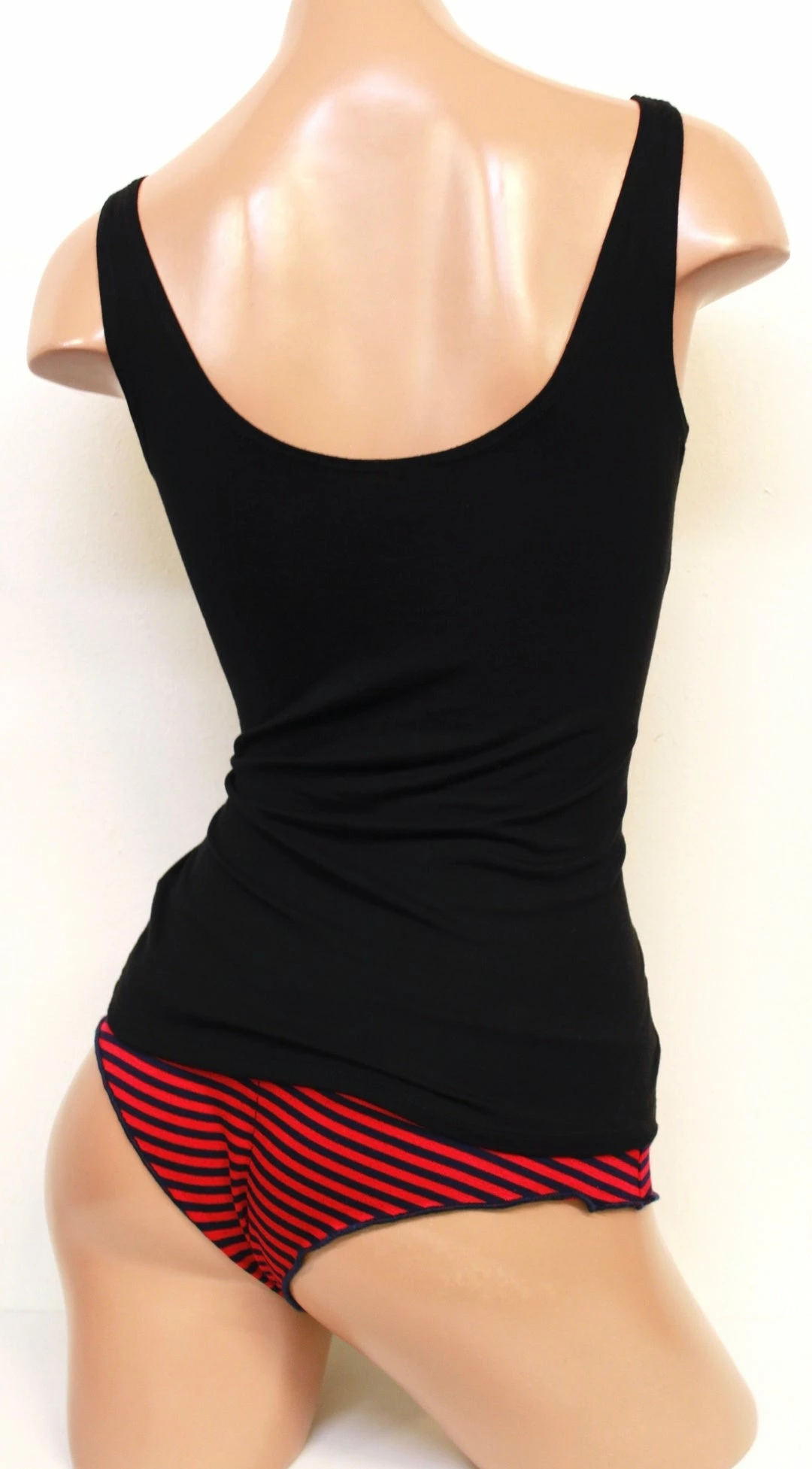 Our new Sugarpuss Logo Lips tanks are so comfy, you won’t want to take it off. We use the softest jersey modal fabric for these. Perfectly scooped to give a little cleavage too. The cut is full length to the waist. Pair this perfectly with our cheeky shorts and tube socks like we did. All items in our shop!