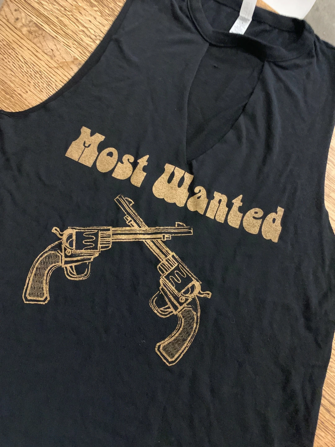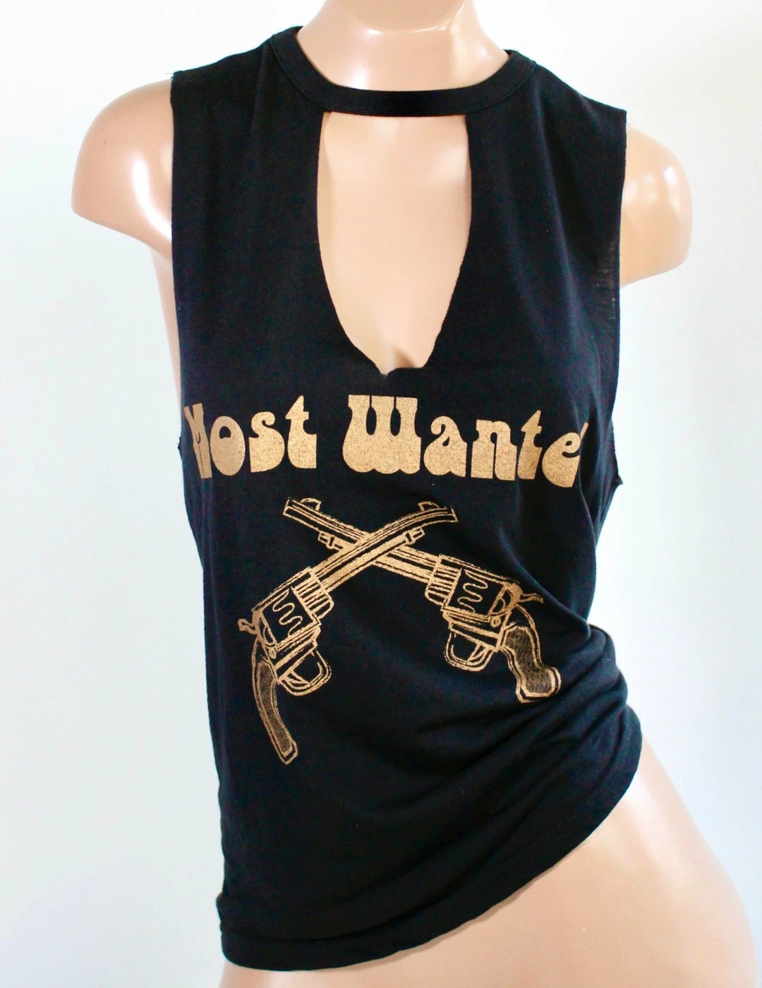 Our new Sugarpuss Most Wanted Tee is the rocker top of your dreams!! The top has a crew neck with a deep-v cut out to give a little cleavage and a relaxed, drapey fit with raw edge sleeves. Plus, it’s super soft and comfy. It will look perfect with your favorite pair of jeans. Shown here with our Plush Velvet Leopard Cheeky Shorts.