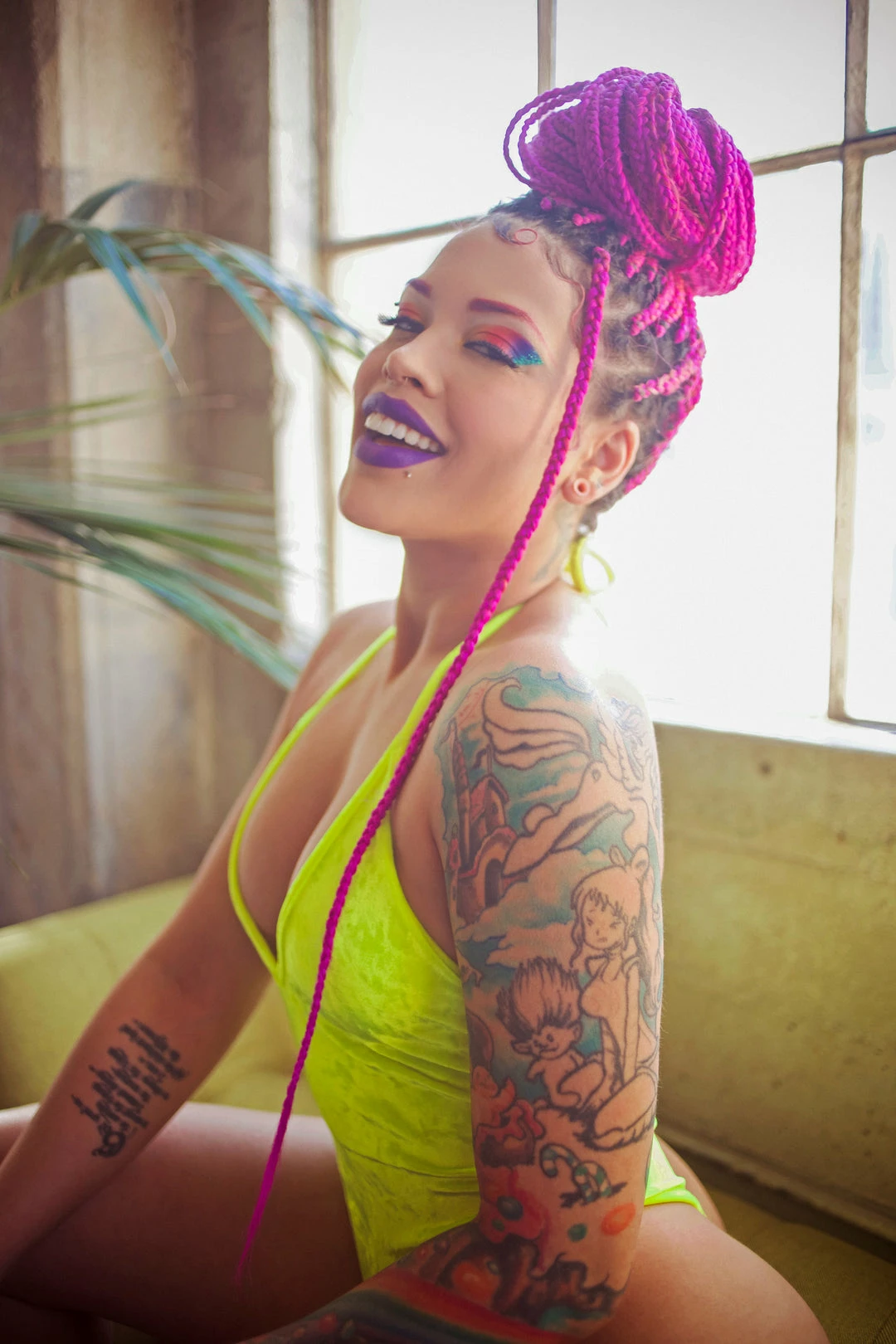 Our popular bodysuit got a make-over! Now in NEONS!! It has a new cut with a little lower in the back and higher cut on the sides showing a little more thigh. The bottom is cut with a thong back. Made out of stretch crushed velvet.