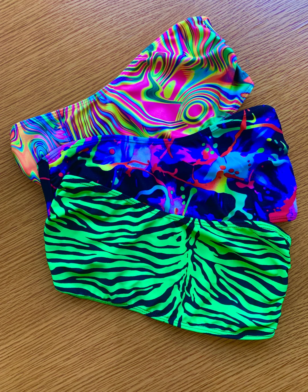 Our teeny bandeaus are the perfect match for our suspender suits! Now available in matching Neon Prints to either pair with the matching suit or another neon color. Or just wear it on its own!