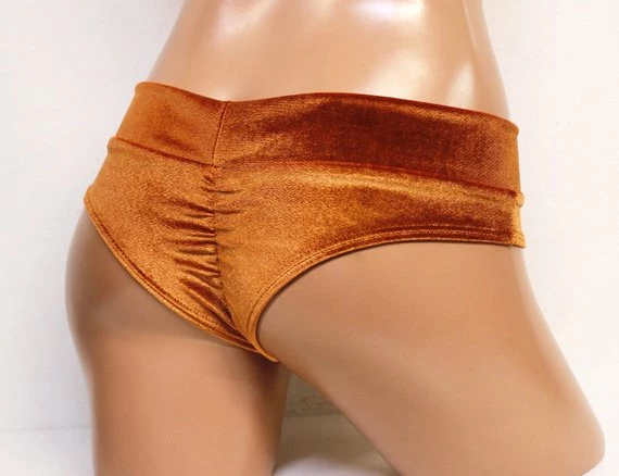 Super soft and comfy! Not only are these cheeky bottoms comfy but sexy too! The bottoms are a low-rise bottom, almost a thong, with a banded waist. This waistband allows for extra comfort without tight elastic. The back of the suit has a scrunch down the center to give great curves in the back. It is smaller than our Rio-cut bottoms, with less coverage.