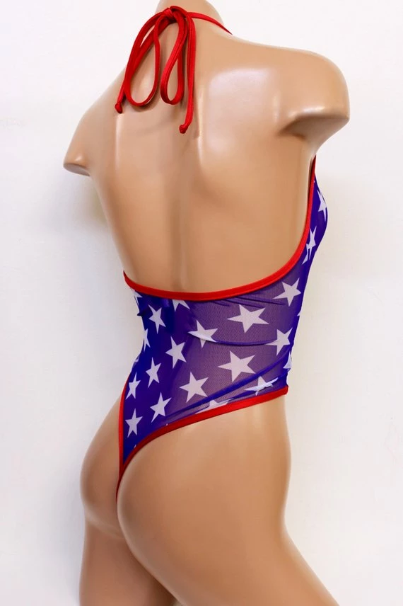 Our popular bodysuit got a make-over! It has a new cut with higher cut legs on the sides showing a little more thigh for a sexier feel. It ties around the neck.