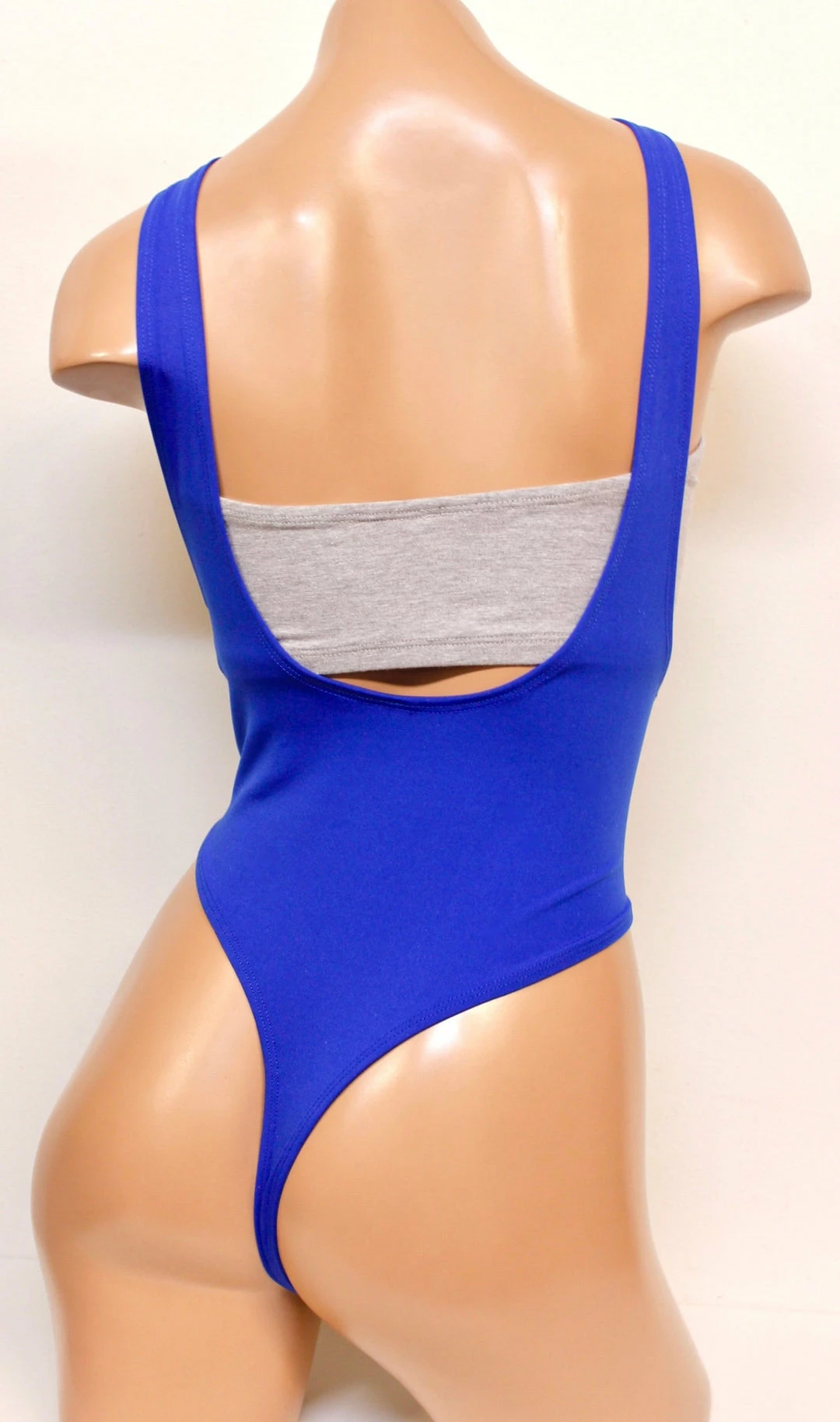 Our most popular Suspender Suit is cut so that the straps act as “suspenders.” The back of the suit is high cut thong back. This suit is super sexy and has a retro 80’s feel. It can be worn as a swimsuit or a bodysuit. Get playful and add one of our bandeaus! Cut off a tee or tank and wear it with this suit. Be unique!!